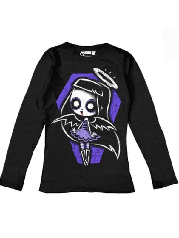 Akumu Ink Black Women's Top with Art Print and Back Logo, 100% Cotton Fashion Tee