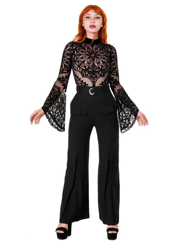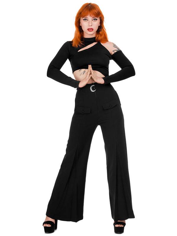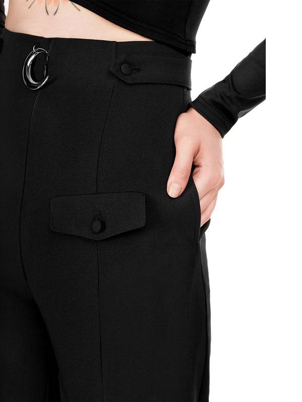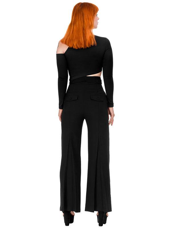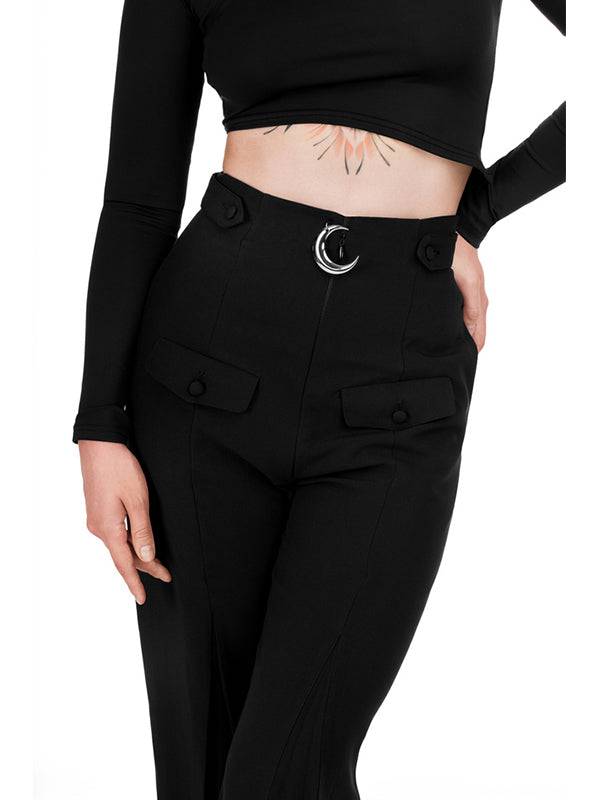 De ongelooflijk hoge taille van deze broek zorgt niet alleen voor een slanker silhouet, maar maakt ook de benen langer, wat elegantie en zelfvertrouwen geeft. De verborgen ritssluiting met halvemaanvormig trekje voegt een unieke charme en een vleugje mysterie toe. Deze broek is voorzien van praktische zijzakken. De uitlopende naden naar de onderkant geven deze broek een lichte en elegante uitstraling.
