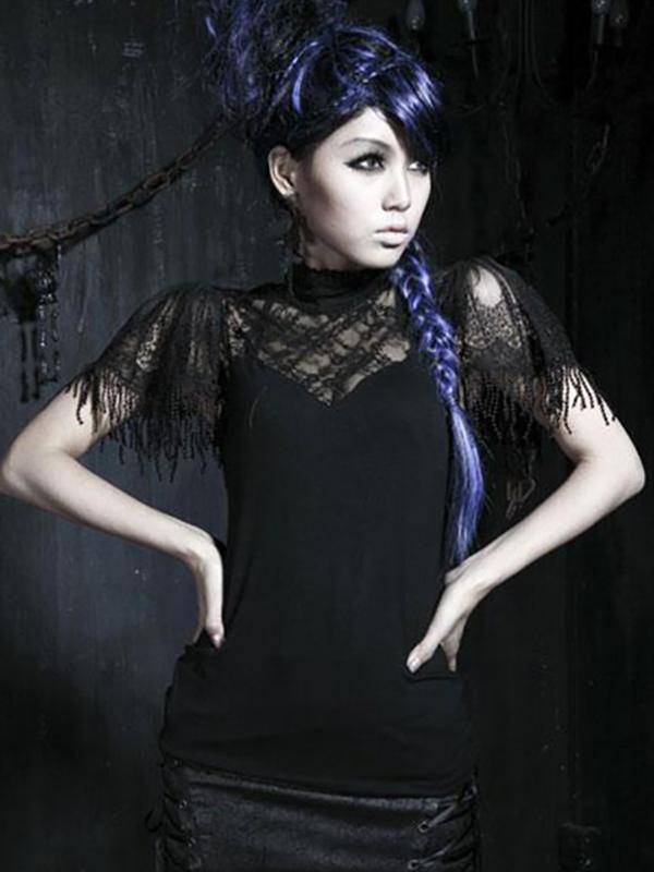 Elegant Cotton Top With Lace And Fringes - Unique Punk/Rave Fashion Statement - M/L - Op voorraad ist auf Lager und wird versandt, sobald es wieder verfügbar ist