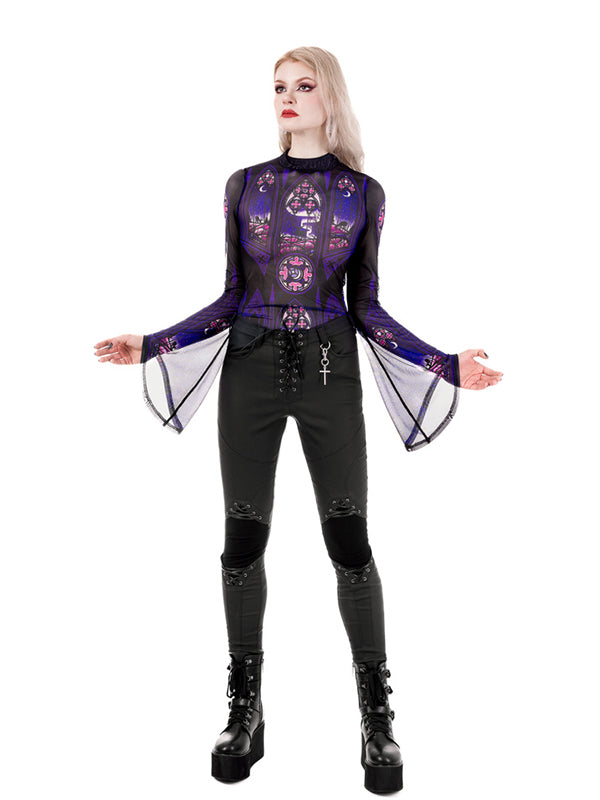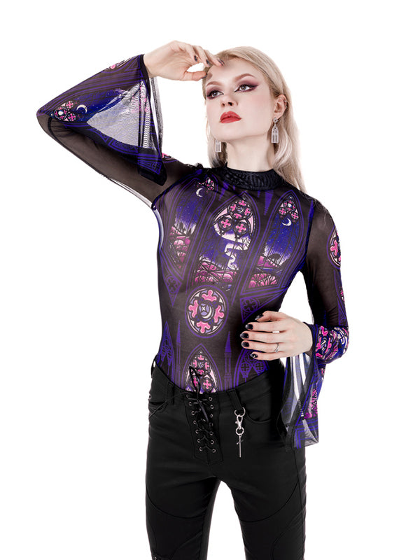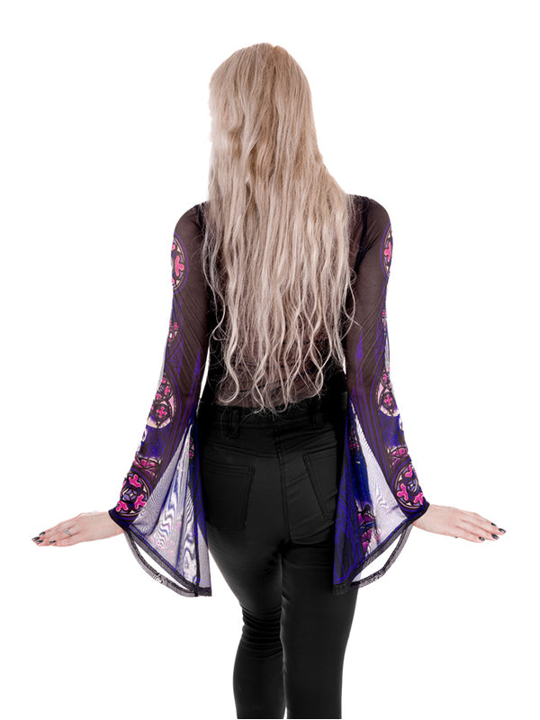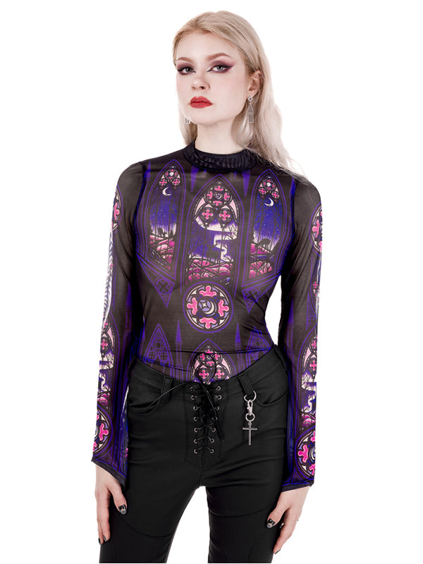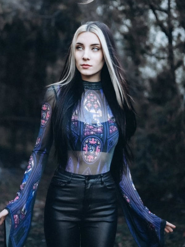 Fijne transparante mesh-stof – zo etherisch als de nachtelijke hemel met betoverend noorderlicht, majestueuze rendieren en prachtige gotische raamkozijnen in één adembenemend stuk Elegante hoge kraag Drukknoopsluiting – voor gemak en een veilige pasvorm.