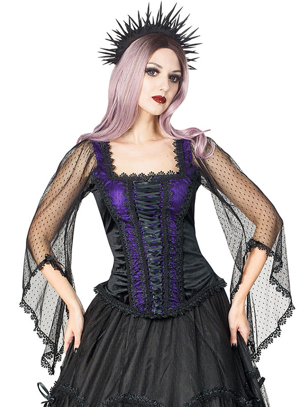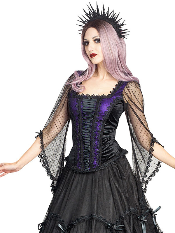 Elegant Velvet Gothic Top With Romantic Square Neckline & Lace Accents by Sinister Clothing