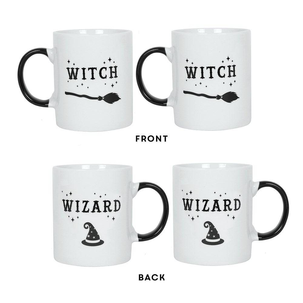 Set of 2 White Mugs with Witch & Wizard Print – 11cm High, 8cm Wide, Perfect Gift - Op voorraad ist auf Lager und wird versandt, sobald es wieder verfügbar ist