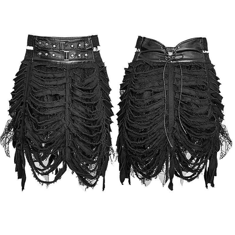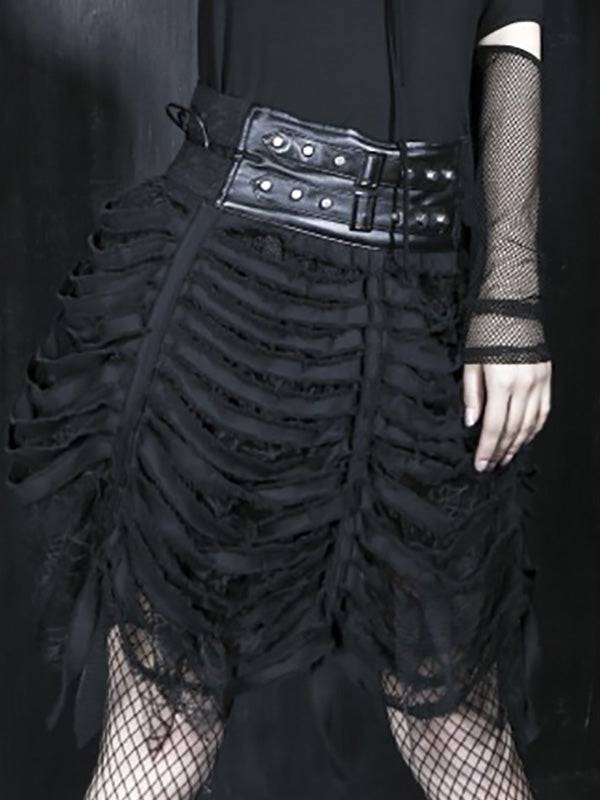 Dead Can Dance Cotton Skirt S/M with Spiderweb Mesh, Studded Buckle & Lacing Detail - S/M - Op voorraad ist auf Lager und wird versandt, sobald es wieder verfügbar ist