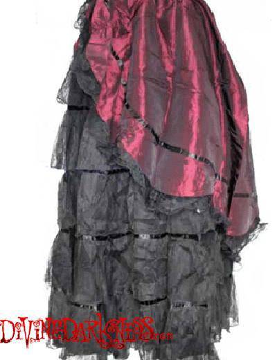 Victorian Burgundy Taffeta Skirt with Lace and Elastic Waistband for Elegant Style