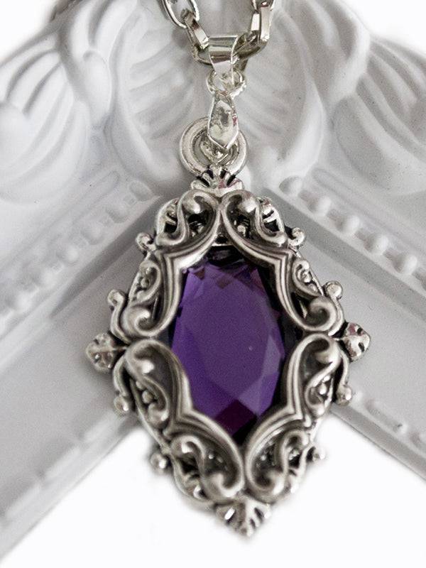 Victorian Amethyst & Silver Gothic Necklace - Elegant 40x25 mm Drop Pendant