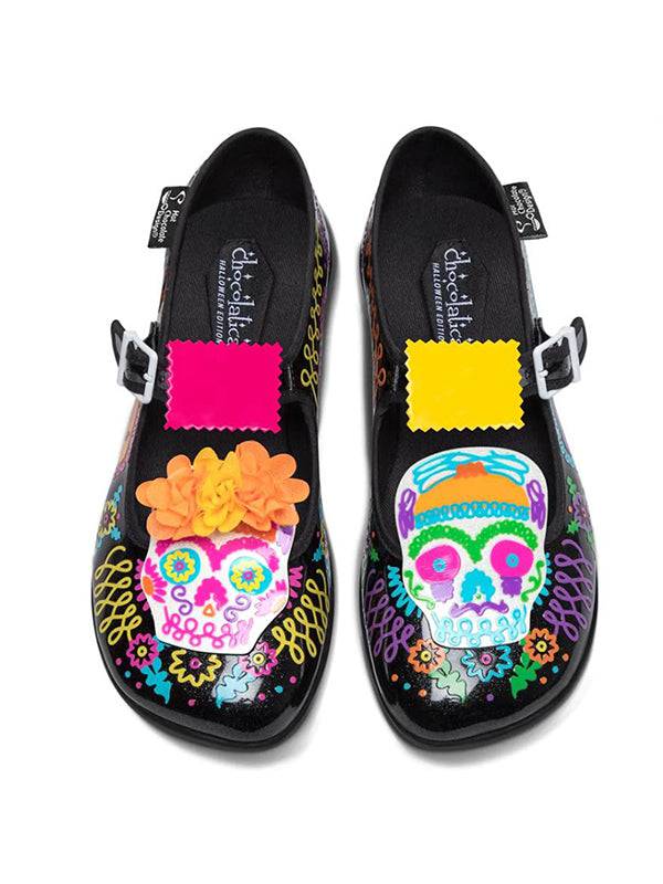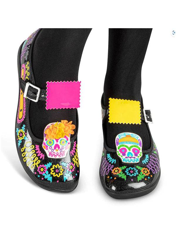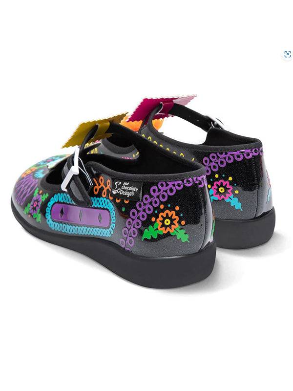 Hot Chocolate Design® Sugar Skull Shoes with Glitter PU, Vegan Comfort & Removable Accessories