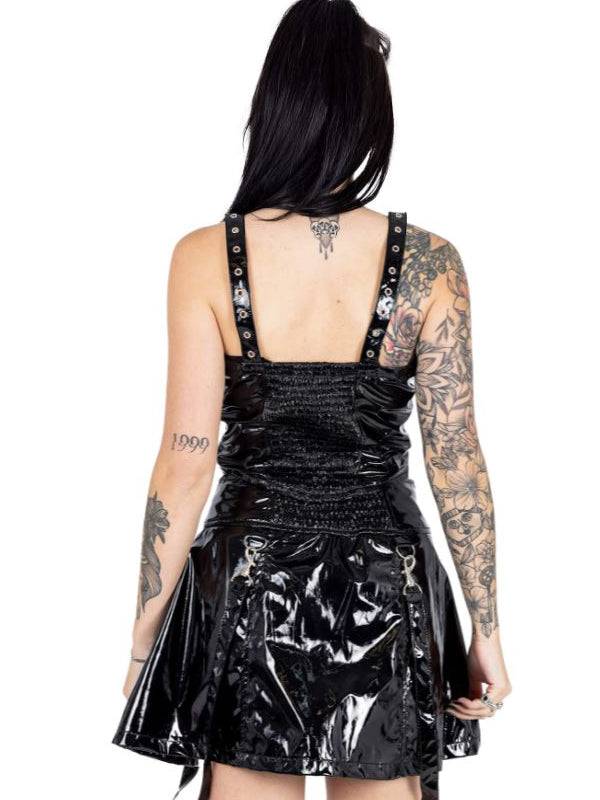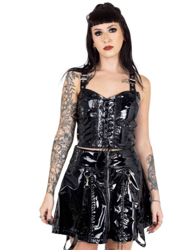 Poizen Industries Black PVC Top with Front Laces and Adjustable Shoulder Straps - L - Op voorraad is in bestelling en wordt verzonden zodra het weer op voorraad is