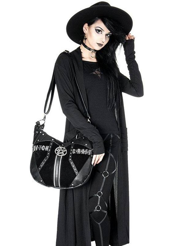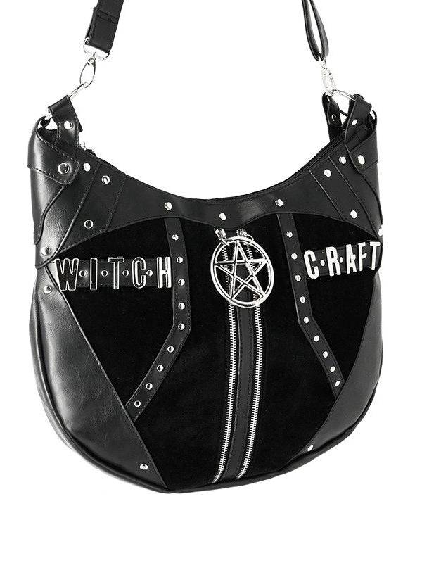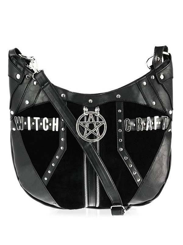 Tas gemaakt van massief, zwart fluweel en kunstlederen versieringen. In het midden van de tas zit een dubbele ritssluiting met pentagram. Het is omgeven met panelen van kunstleer. Tas wordt geleverd met lange, verstelbare draagriem. Binnen is er zwarte, zachte voering met twee zakken. Een grote met rits en een andere kleinere. Op de achterkant van de tas zit nog een vak.