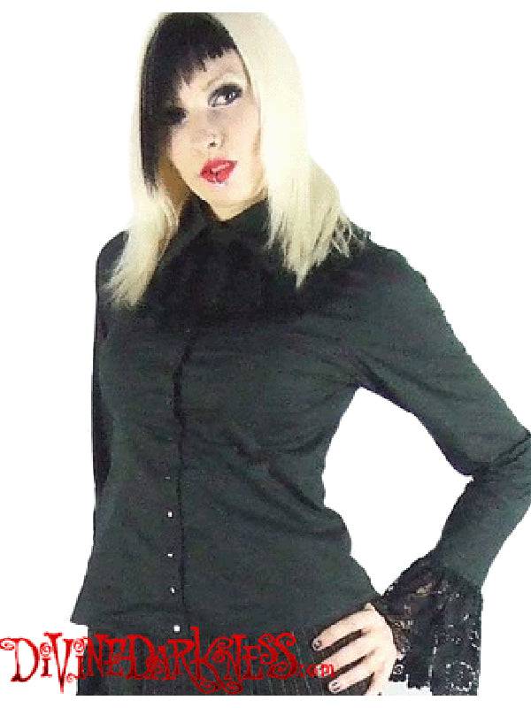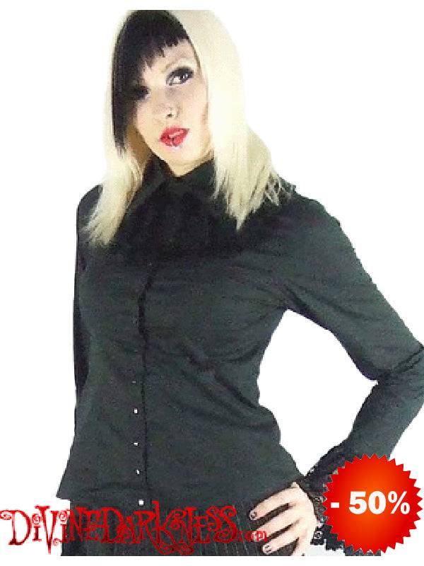 Nobless Black Blouse with Long Sleeves and Lace Details in S, L, XL Sizes
