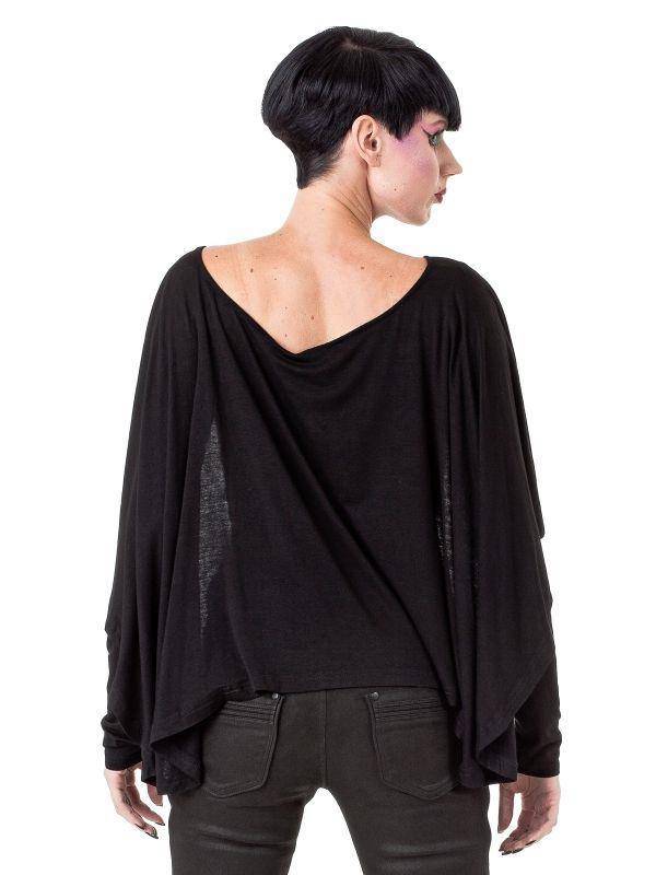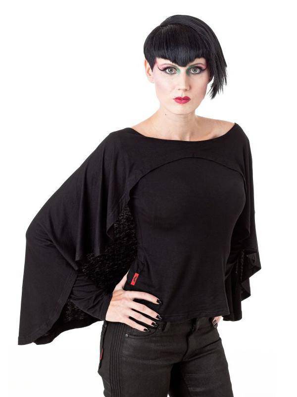 Gothic Bat Top for Women - Black Polyester Alternative Fashion by Queen of Darkness - S - Op voorraad is in bestelling en wordt verzonden zodra het weer op voorraad is