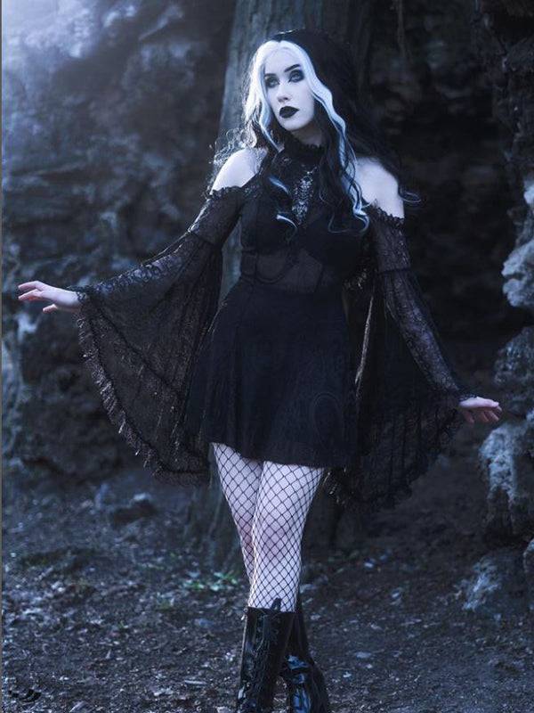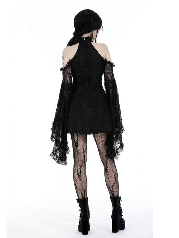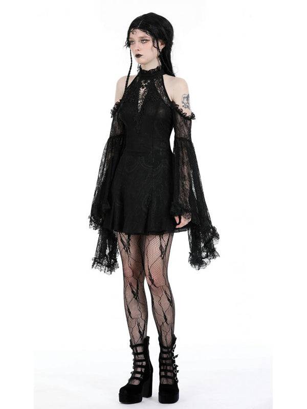 Dark In Love Cold Shoulder Girls Dress With Lace Sleeves, 100% Polyester, Back Zip Closure