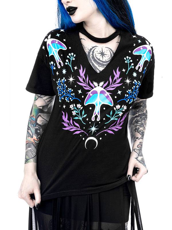Oversized Moonglow Top With V-Neck and Choker - 100% Cotton, Slim Fit, Durable Print