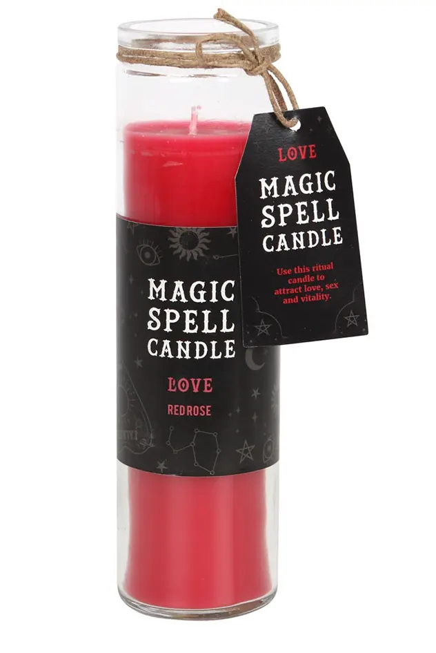 Inspired by traditional 7 day prayer candles, this red tube candle comes in a lovely rose fragrance and is perfect for accompanying spells of love and romance. Whether used as alternative decor or as a sacred ritual tool, this candle will attract all things divine. Paraffin wax. Approximate burn time of 70 hours.
