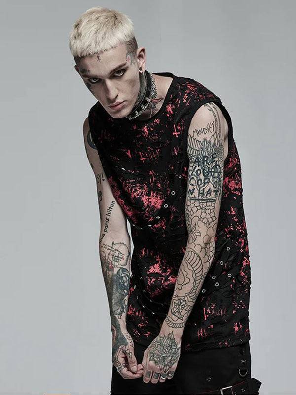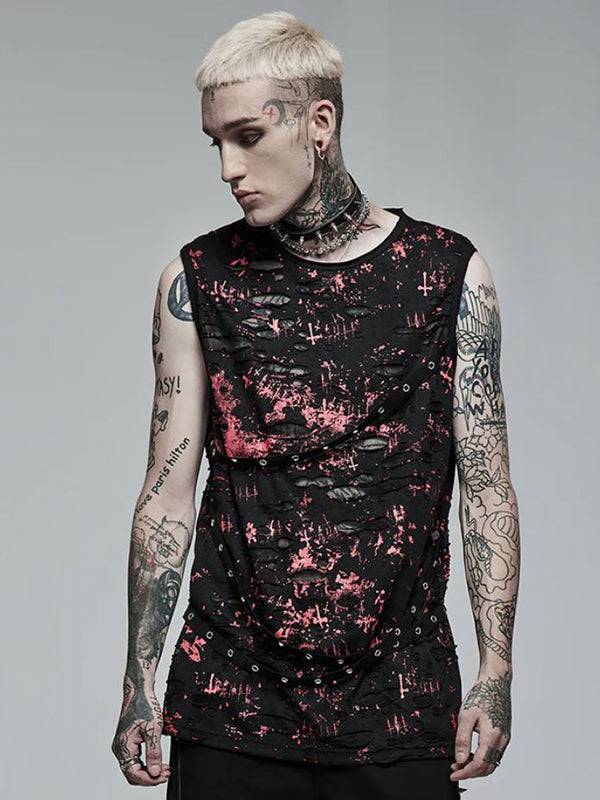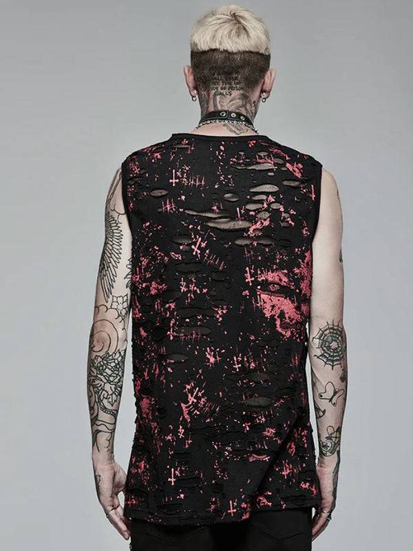 Punk Rave Scars And Ashes Top With Straps, Mesh, And Frayed Fabric - 95% Cotton - L/XL - Op voorraad is in bestelling en wordt verzonden zodra het weer op voorraad is
