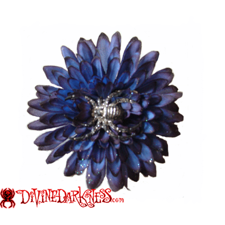 Silver Hair Clip With Blue Flower And Spider Design - Unique Fashion Accessory - Op voorraad is in bestelling en wordt verzonden zodra het weer op voorraad is