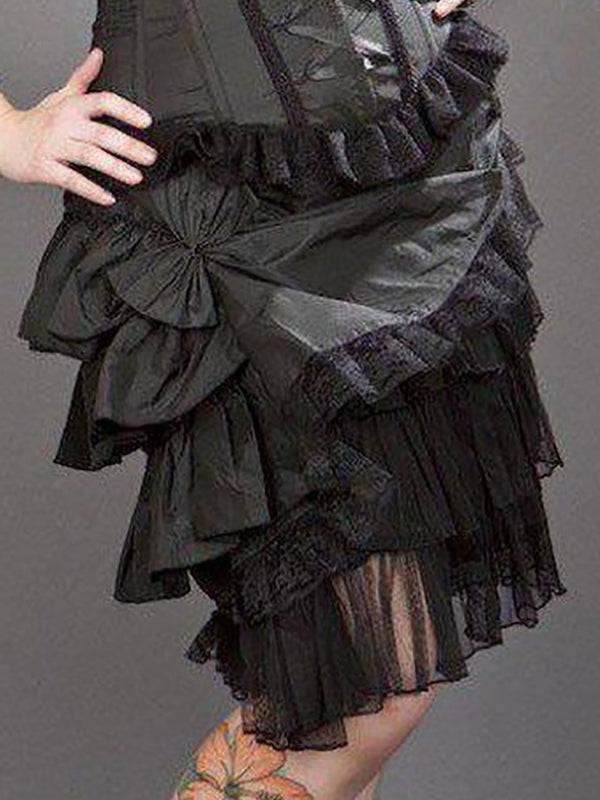 Burleska Tessa Black Taffeta Skirt With Lace Underskirts And Elastic Waistband