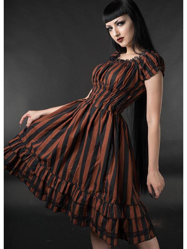 Adjustable Brown Striped Summer Dress – Perfect For Any Occasion, 100% Cotton Comfort - S - Op voorraad ist auf Lager und wird versandt, sobald es wieder verfügbar ist
