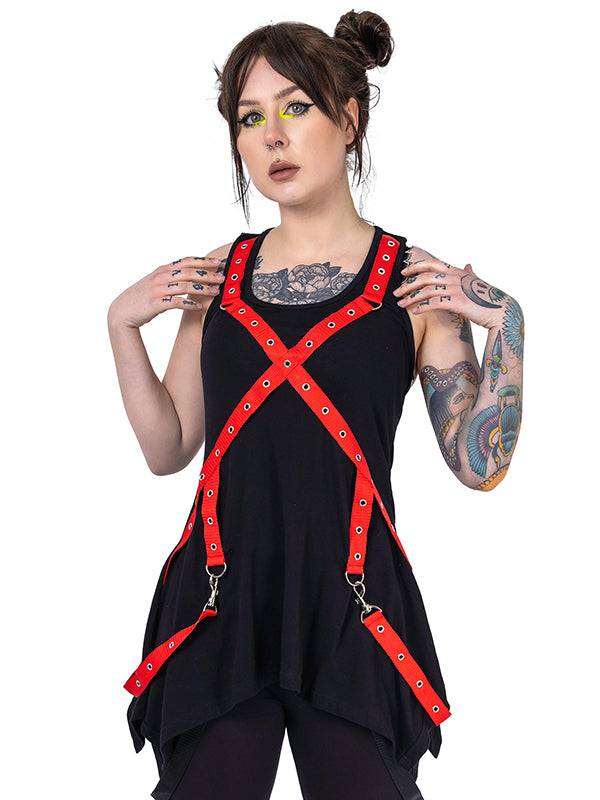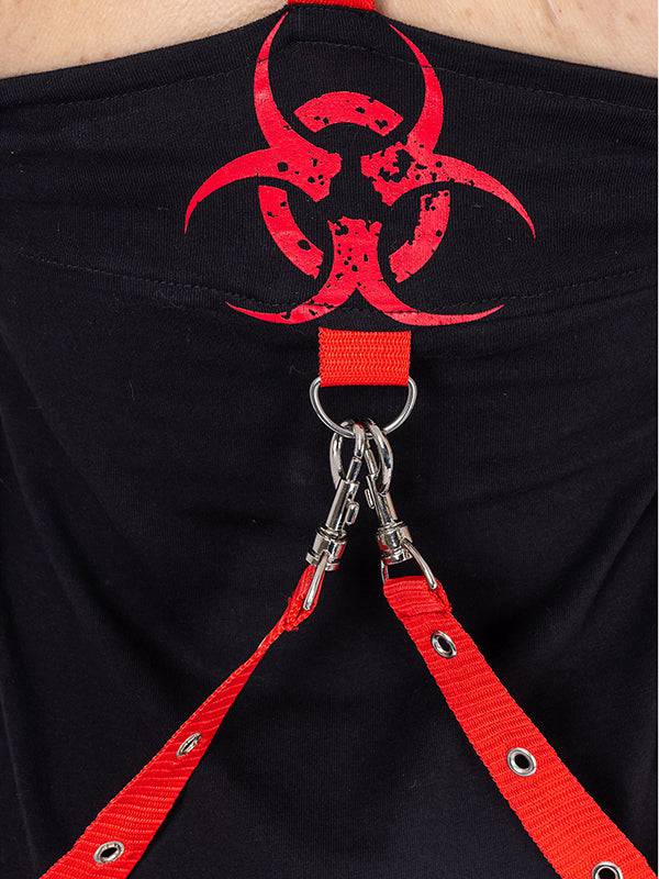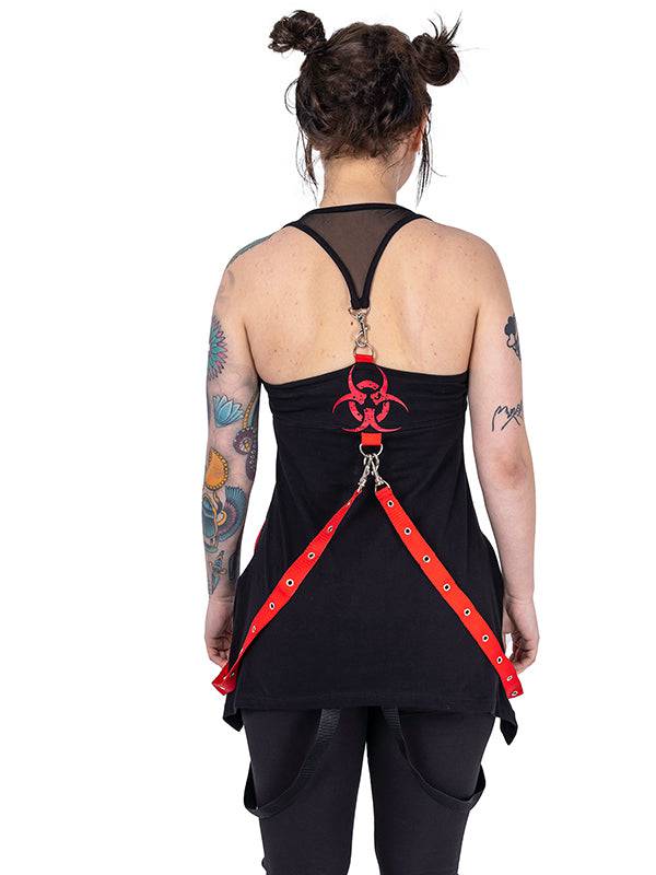 Cotton Mesh Top With Detachable Straps & Biohazard Print - Unique Casual Style by Poizen Industries