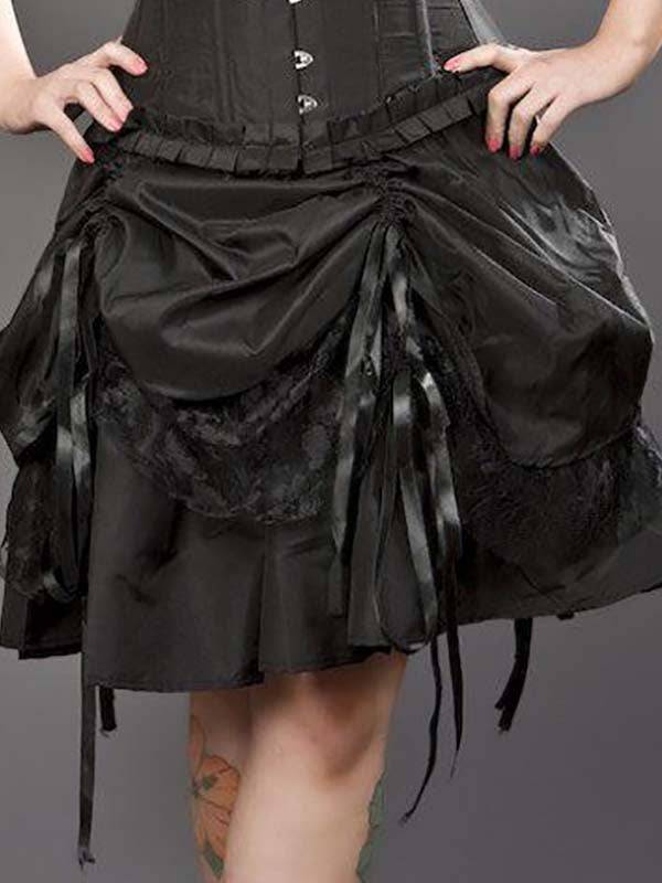 Burleska. Dita knie lengte rok met lagen taffeta, zwart kant en satijn.