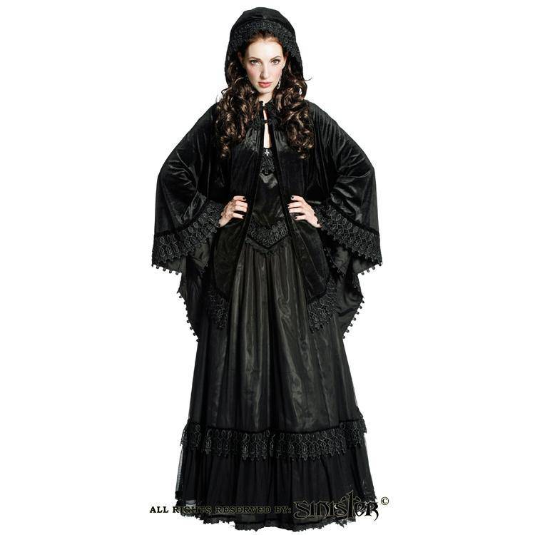 Black Velvet Gothic Cape with Batwing Sleeves - Half Length Style by Sinister Clothing ist auf Lager und wird versandt, sobald es wieder verfügbar ist