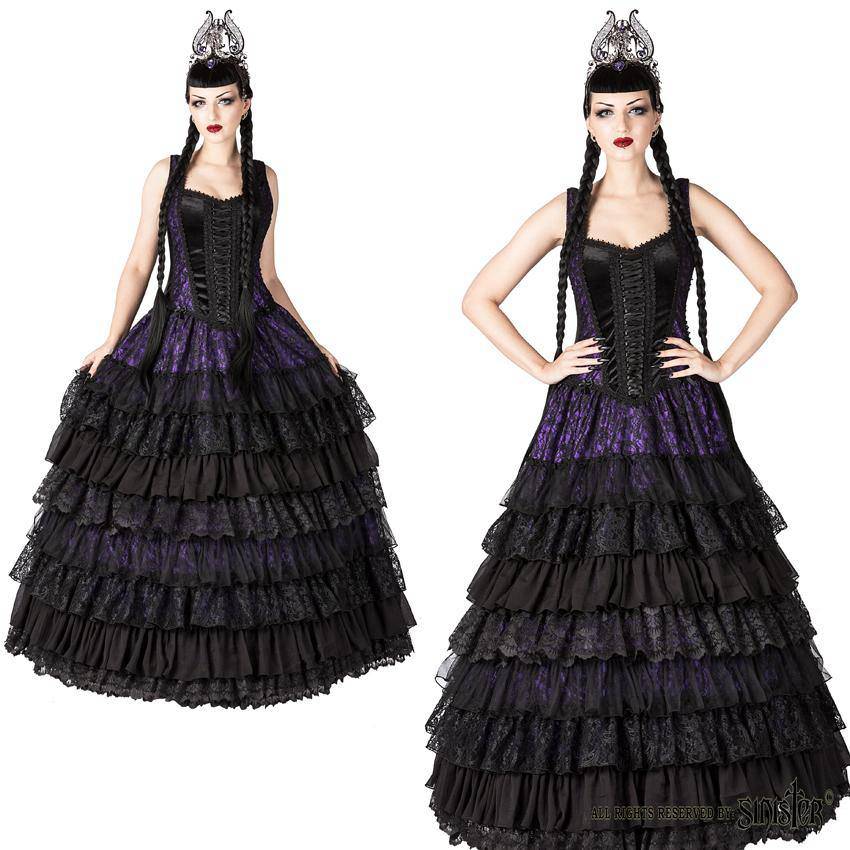 Sinister. Lange jurk van fluweel, satijn en kant.