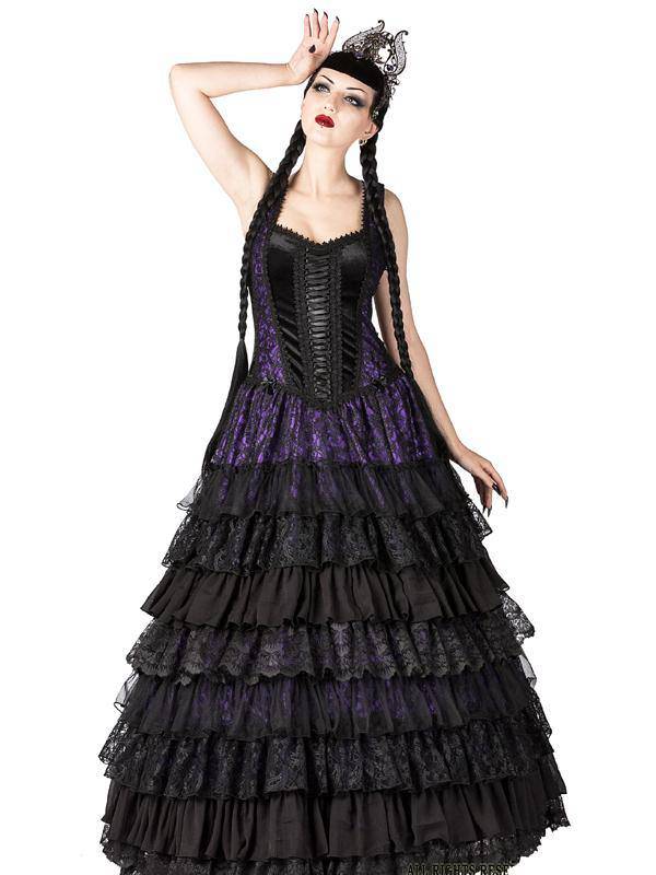 Sinister Purple Gothic Velvet Satin Lace Dress with Hoop Skirt for a Stunning Look