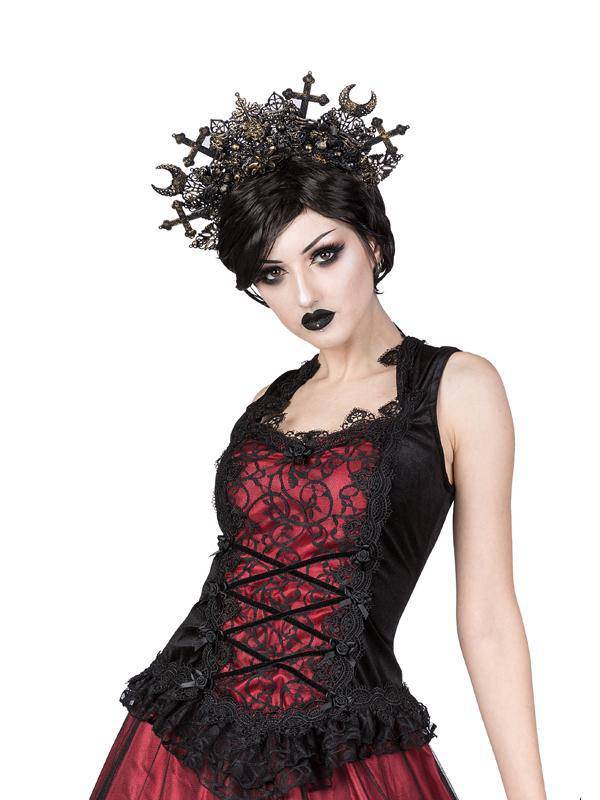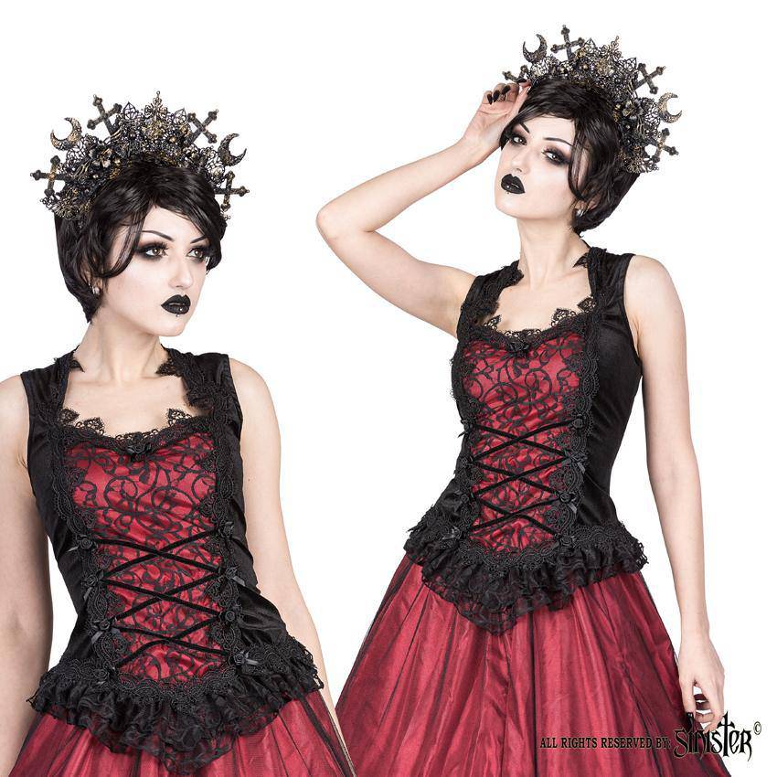 Sinister Dark Fairy Goth Sleeveless Top with Square Neckline and Back Zip Closure - S ist auf Lager und wird versandt, sobald es wieder verfügbar ist