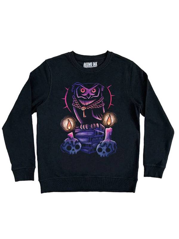 Akumu Ink Owl's Crypt Black Sweatshirt - Eco-Friendly 80% Cotton Art Print - S ist auf Lager und wird versandt, sobald es wieder verfügbar ist
